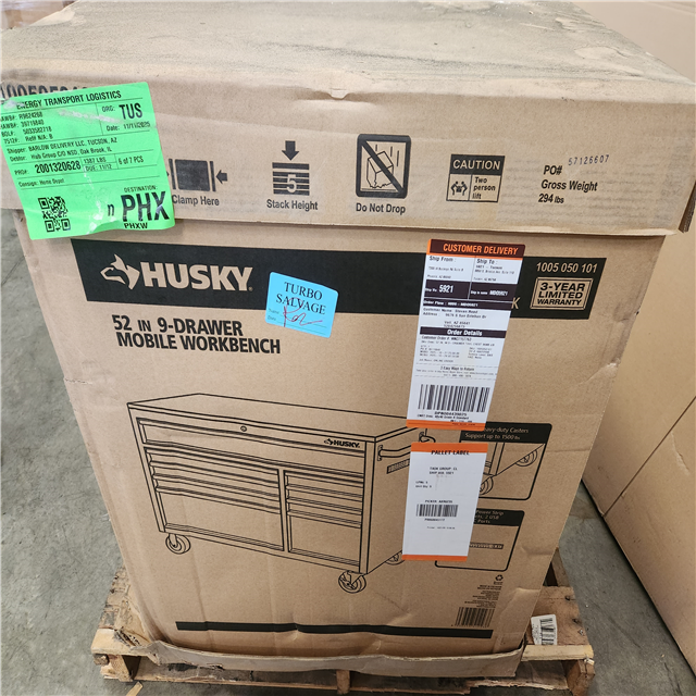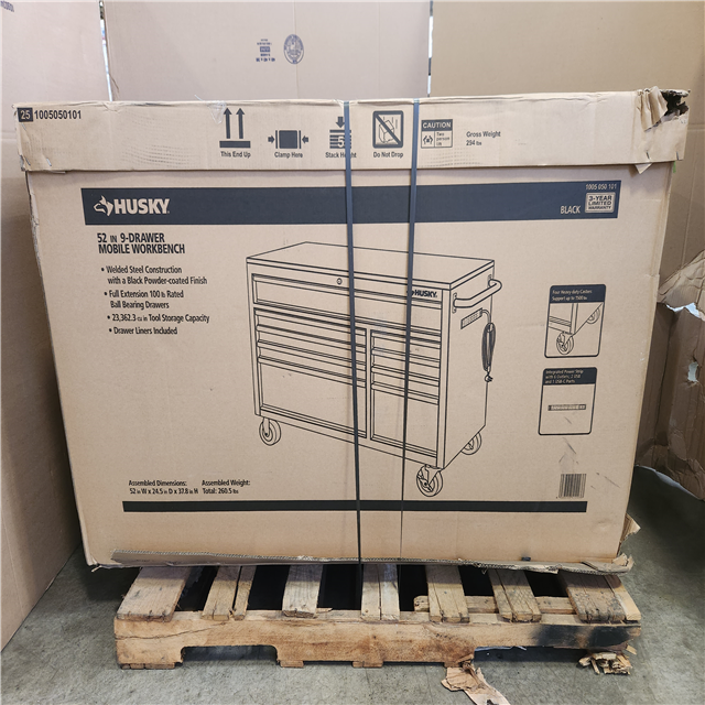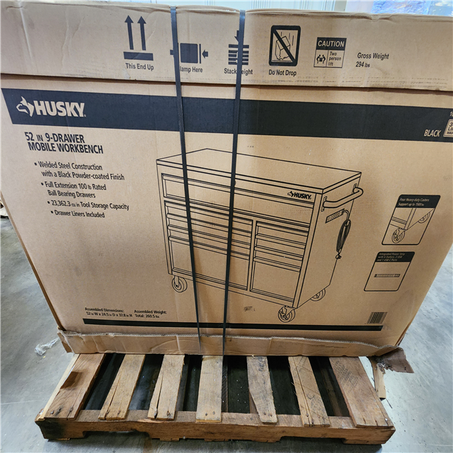Phoenix NEW Husky 52 in. W x 25 in. D Standard Duty 9-Drawer Mobile Workbench Tool Chest with Solid Wood Top in Gloss Black (SEALED)