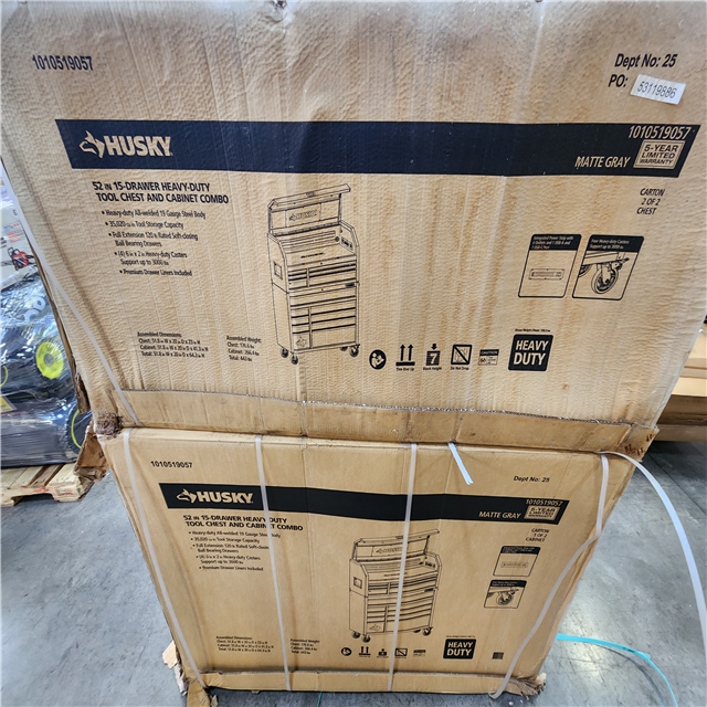 Phoenix NEW Husky Heavy-Duty 52 in. W 15-Drawer Matte Gray Steel Rolling Tool Chest Combo in Matte GRAY