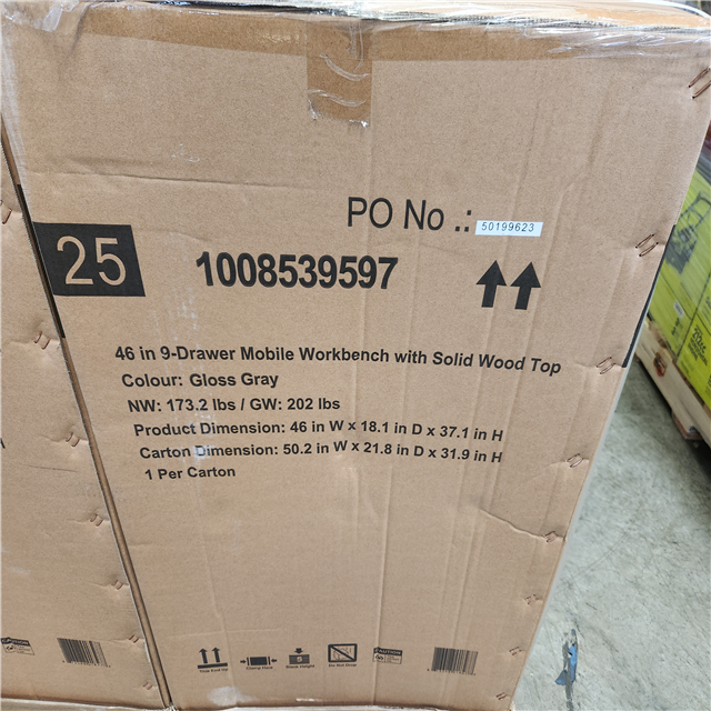 Phoenix NEW Husky Tool Storage 46 in. W Gloss Gray Mobile Workbench 9-Drawer with Solid Wood Top (SEALED)