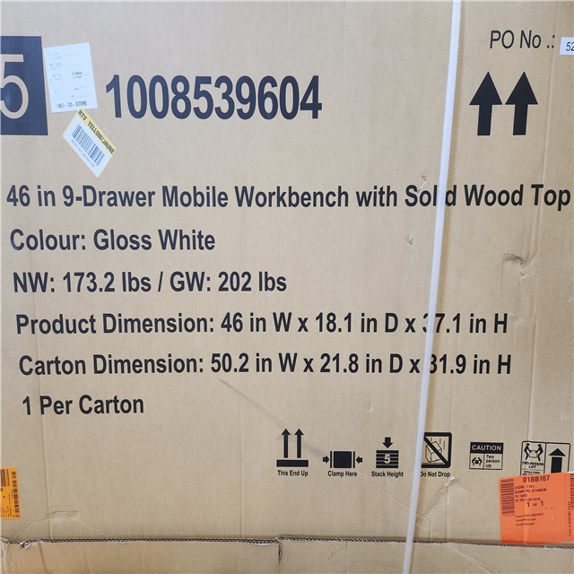 Phoenix NEW Husky Tool Storage 46 in. W x 18 in. D 9-Drawer Gloss White Mobile Workbench Cabinet (SEALED)