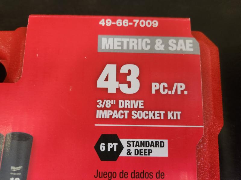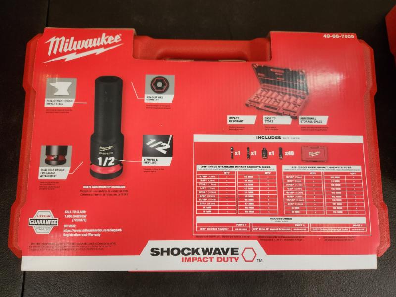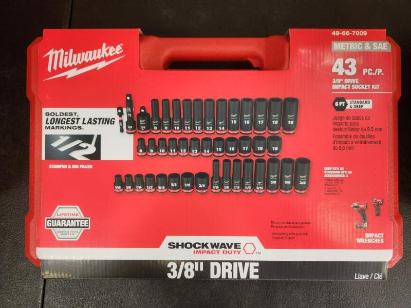 Phoenix NEW Milwaukee SHOCKWAVE 3/8 in. Drive SAE and Metric 6 Point Impact Socket Set (43-Piece) (SEALED)
