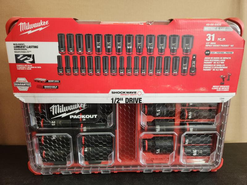 Phoenix NEW Milwaukee SHOCKWAVE Impact-Duty 1/2 in. Drive Metric and SAE Deep Well Impact PACKOUT Socket Set (31-Piece)