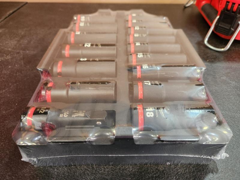 Phoenix NEW Milwaukee SHOCKWAVE Impact-Duty 1/2 in. Drive Metric and SAE Standard Impact PACKOUT Socket Set 16 pieces (SEALED)