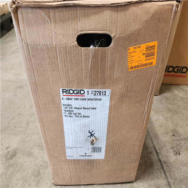 Phoenix NEW RIDGID K-400 AutoFeed Drain Cleaning Snake Auger 120-Volt Drum Machine and C-45IW 1/2 in. x 75 ft. Cable (No Gloves)