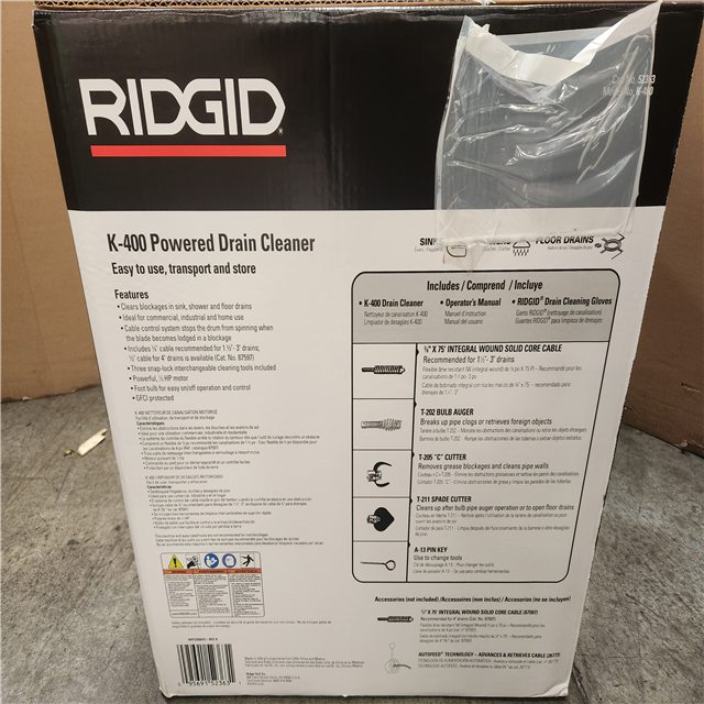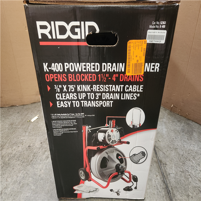 Phoenix NEW RIDGID K-400 Drain Cleaning Snake Auger 120-Volt Drum Machine with C-32IW 3/8 in. x 75 ft. Cable (No Tool Set & Gloves)